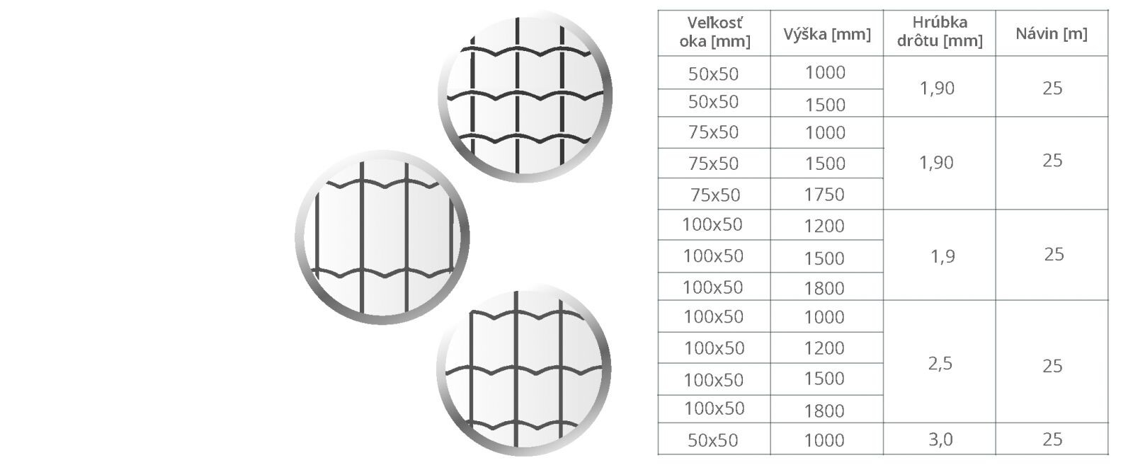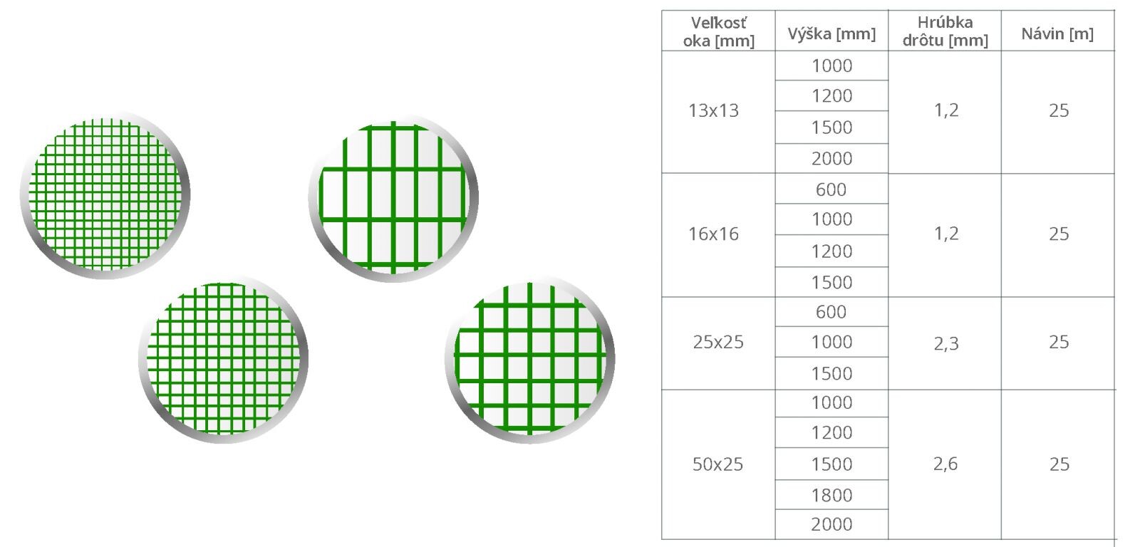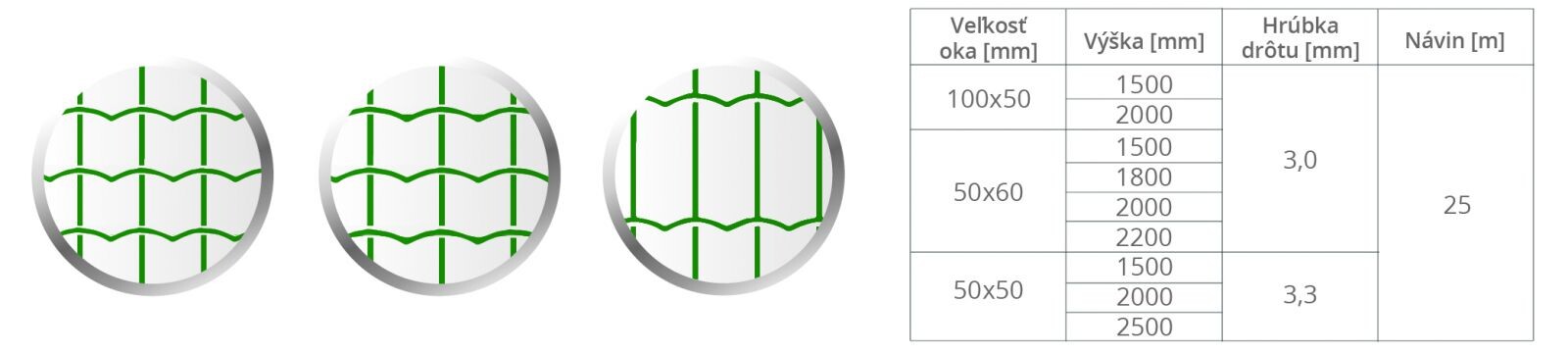 Praktický výber šířek drátů nabízených pletiv.